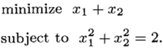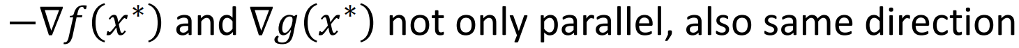 最优点相切,条件约束方向 与 目标函数梯度方向 同向。