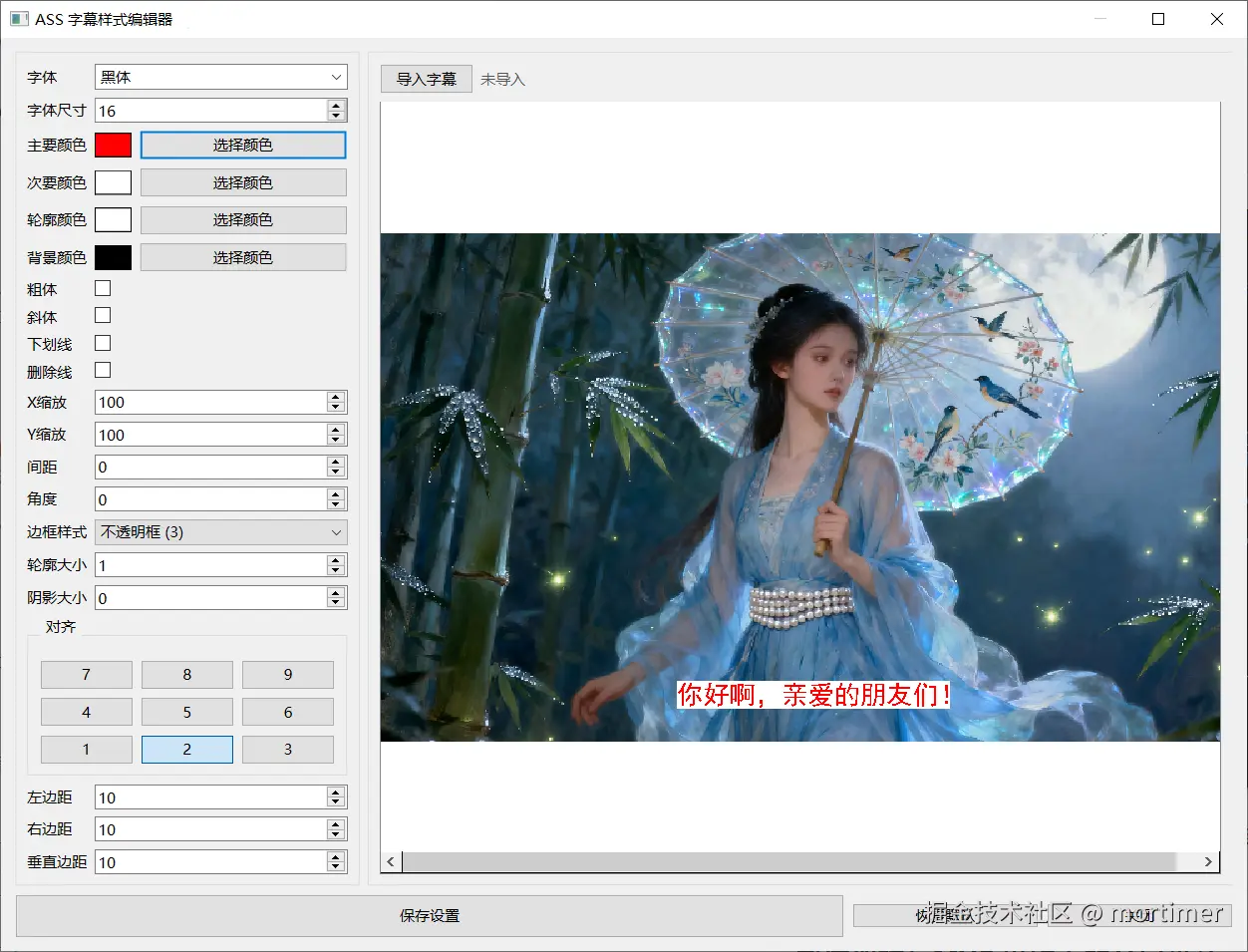 因为 ASS 字幕需要 描边、阴影、旋转、缩放、字母间距 等复杂排版,QLabel/QSS 无法精确控制。因此选择