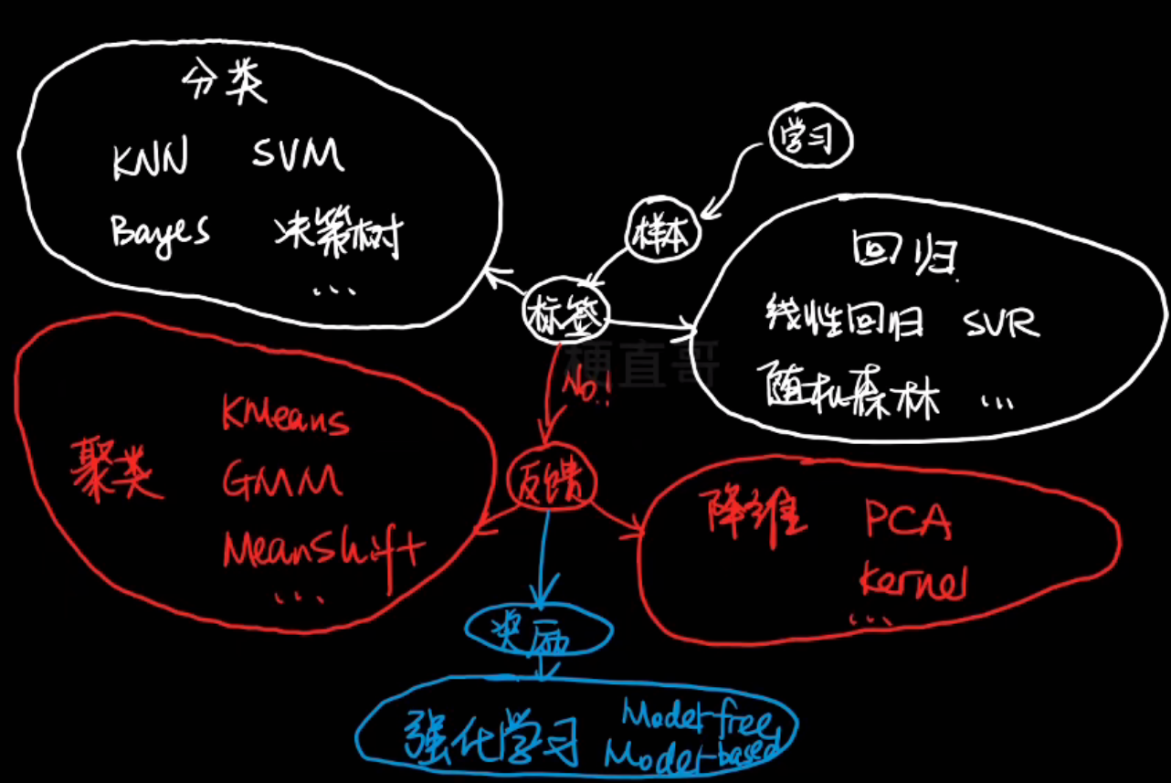 - 聚类:K均值算法(K-means),密度聚类(DBSCAN),最大期望算法