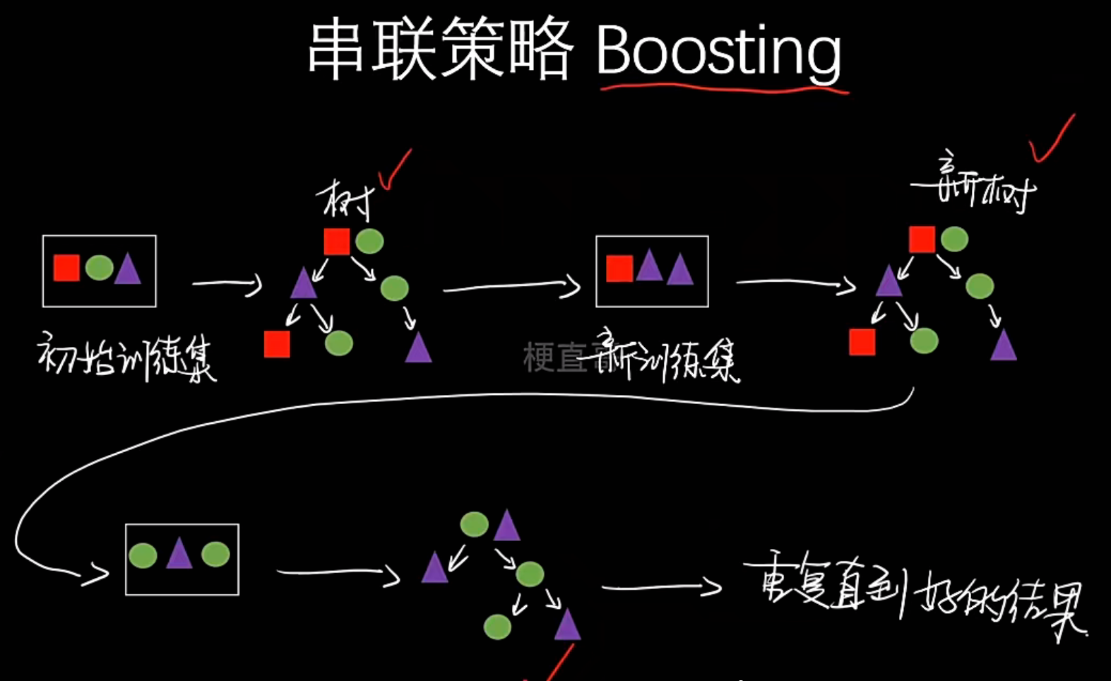- 典型代表 :AdaBoost, GBDT, XGBoost, LightGBM
