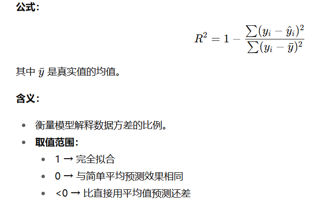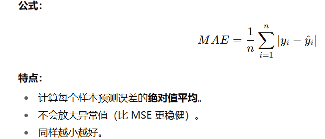 | 岭回归(Ridge Regression) | 回归 + L2正则化 | MSE + λ‖w‖² | 抑制过拟合 | |