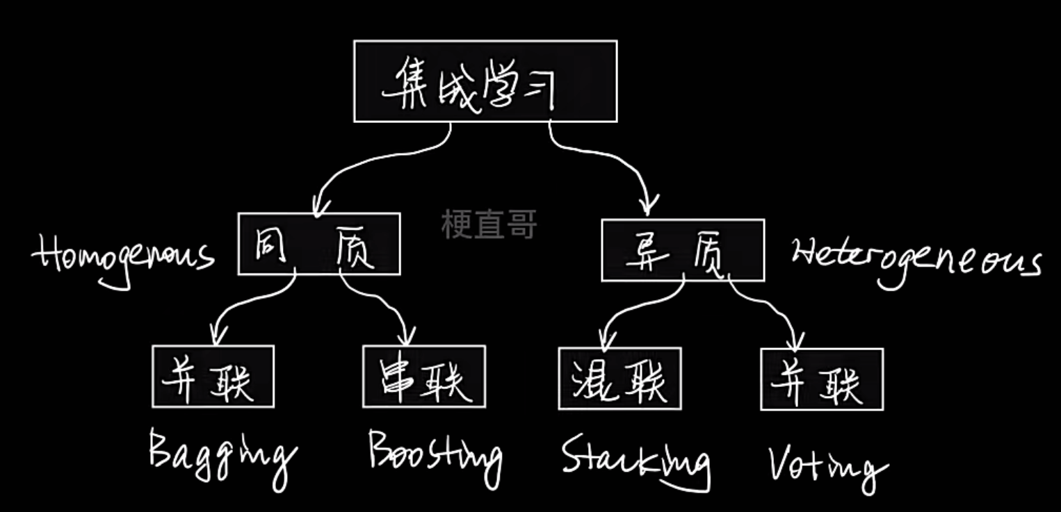 - 含义 :所有基学习器都是同一种类型的模型,比如全是决策树,或者全是神经网络
