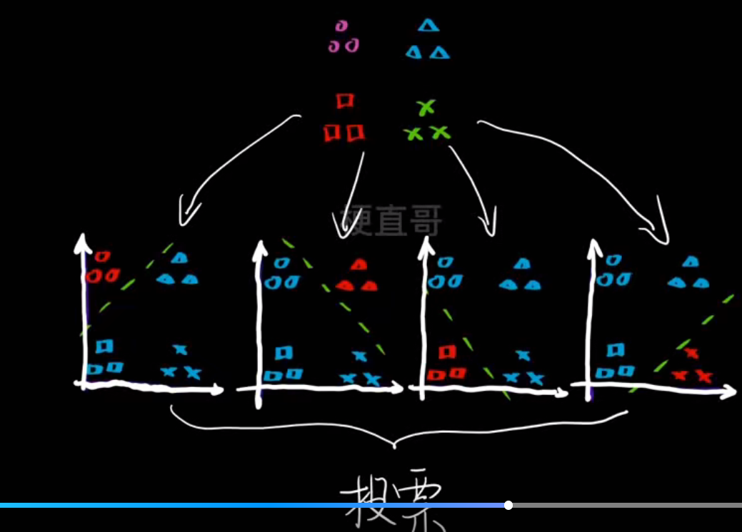 - 代表算法 :Bagging 和 Voting(少数服从多数)