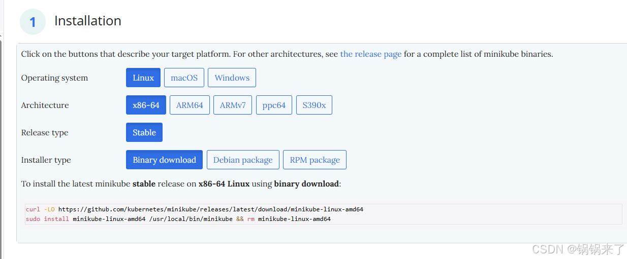 官方文档:https://minikube.sigs.k8s.io/docs/