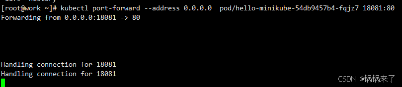 kubectl port-forward --address 0.0.0.0 pod/hello-minikube-54db9457b4-fqjz7 18081:80