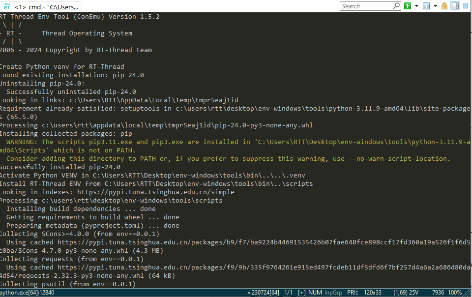 若使用 RT-Thread <= v5.1.0 ,请使用env v1.5.x(Linux) 或 env-windows v1.5.x(Windows)。