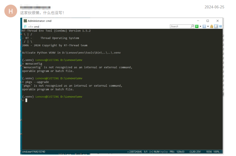 2.下载ENV2.0后,无法使用menuconfig或pkgs xxx命令