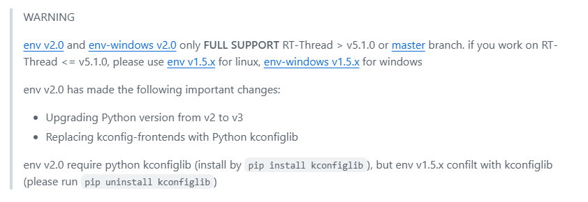 解答:RT-Thread ENV 仓库已明确说明版本兼容性: