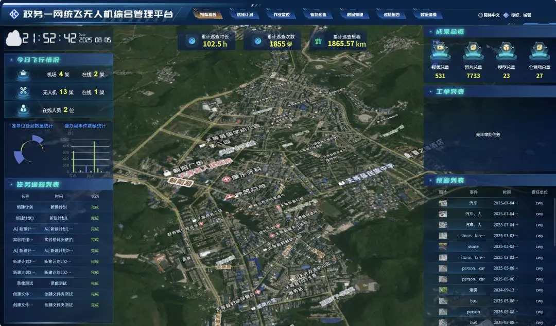 从政策图解中可以清晰看到,"政务一网统飞无人机综合管理平台"已实现对飞行任务的全流程监控。截至2025年8月,该平台累计巡查时长达到102.5小时,巡查次数1855次,总里程超过1865公里。这些数据背后,是传统巡检模式难以想象的效率提升。