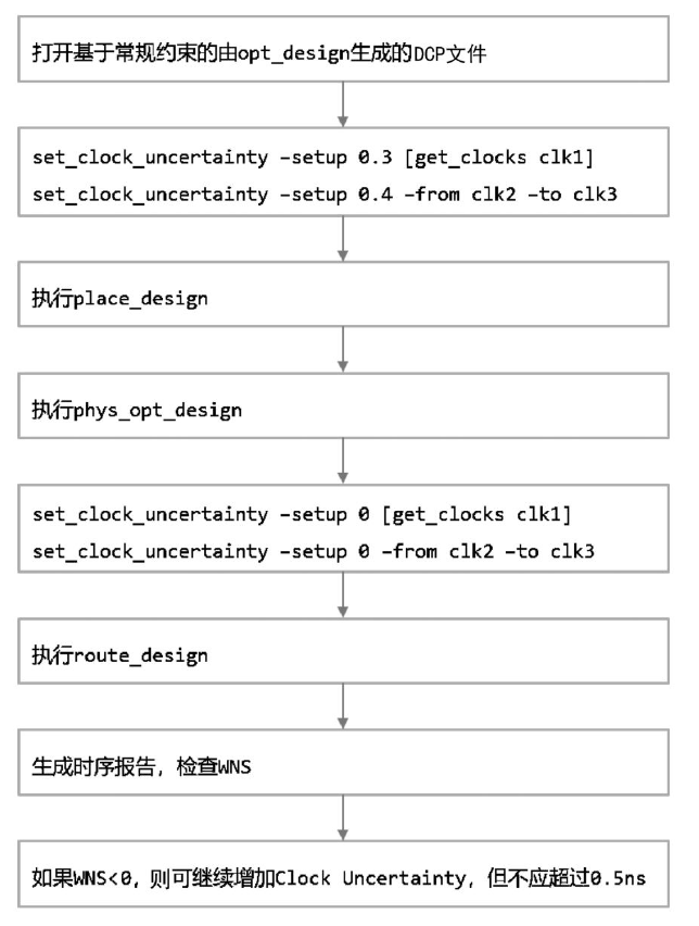 | 过约束量 | report_clock -of_objects $clk | USER_UNCERTAINTY ≤ 0.5 ns |
