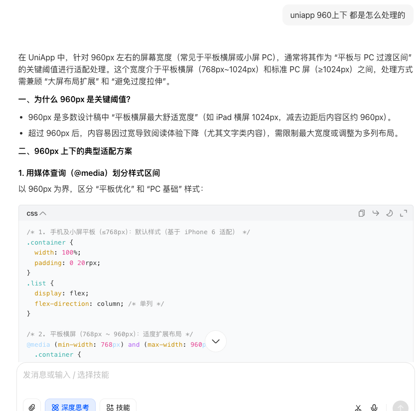 我认为 960就是uniapp的边界线 超过960按PC方式处理 小于960按移动端处理