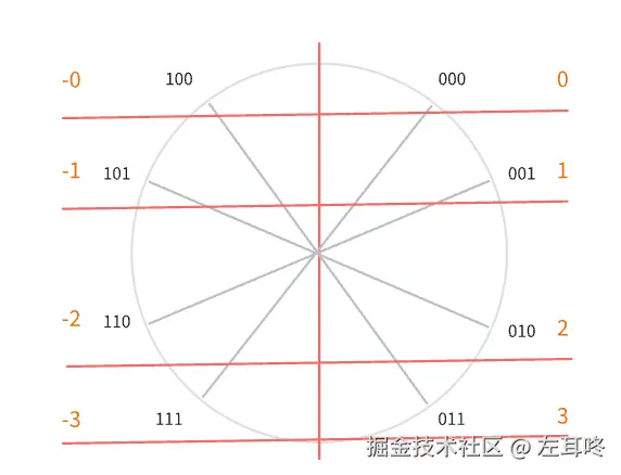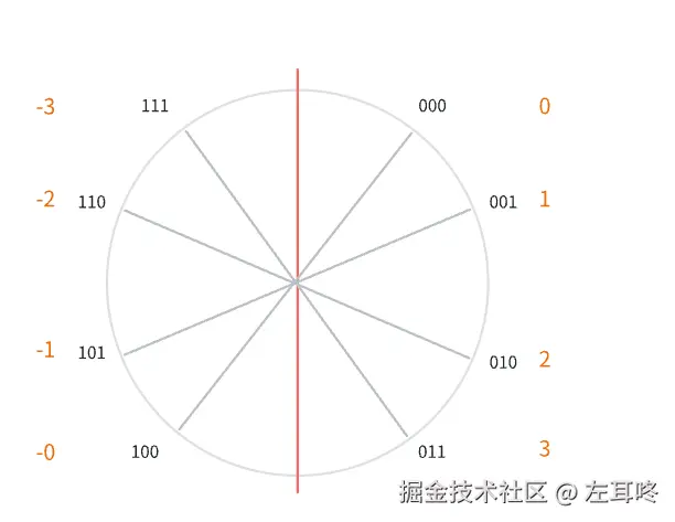 例如 3 个 bit 能表示 8 个数 (+0、+1、+2、+3、-3、-2、-1、-0)