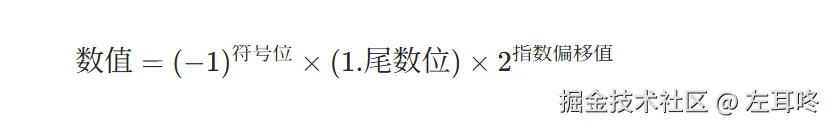 例如 <math xmlns="http://www.w3.org/1998/Math/MathML"> 十进制中的 3.5 = 二进制中的 11.1 = 1.11 ∗ 2 1 十进制中的 3.5 = 二进制中的 11.1 = 1.11 * 2^1 </math>十进制中的3.5=二进制中的11.1=1.11∗21