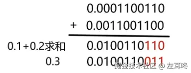 因此,在二进制中,0.1 + 0.2 != 0.3