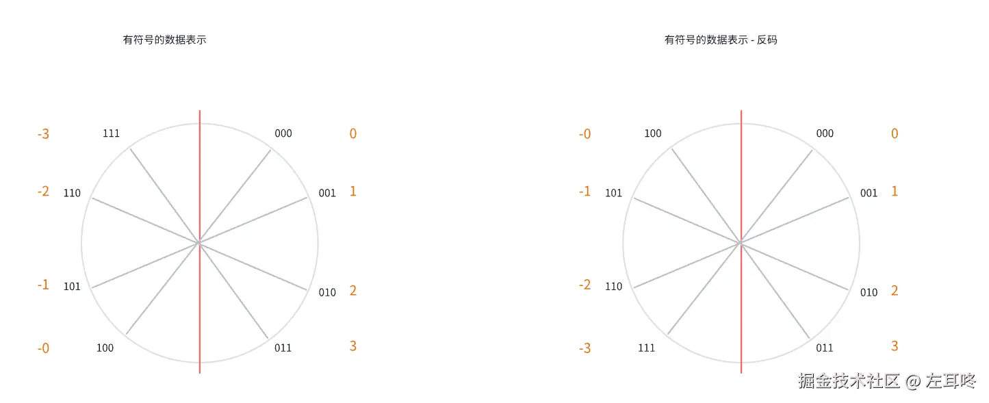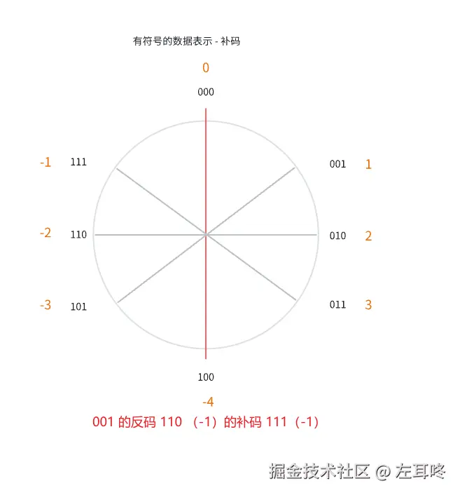但反码中存在的缺点:0 存在着 2 种表示方法(+0、-0),但对于 0 来说,存在一种就可以了,没什么区别。