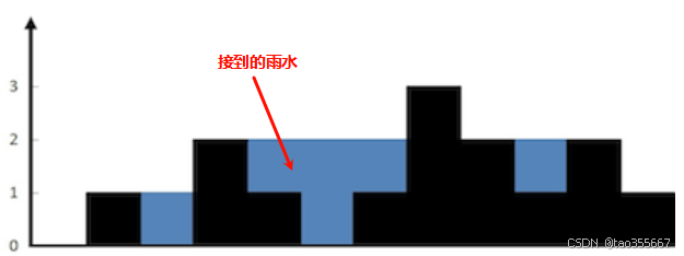 给定 n 个非负整数表示海拔高度,其中每个条形的宽度为 1 ,计算下雨后可以接多少水。