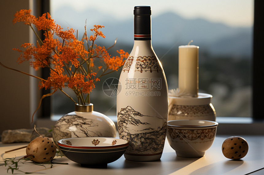 版权图可搜索~摄图~+酒瓶艺术组合,创意酒瓶,生活艺术品