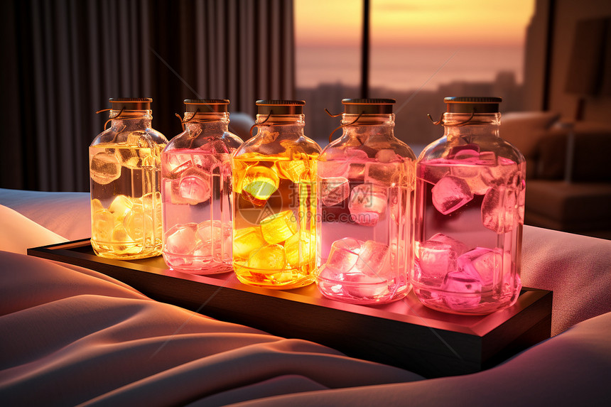 六瓶饮料 梦幻的酒瓶灯具照明