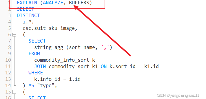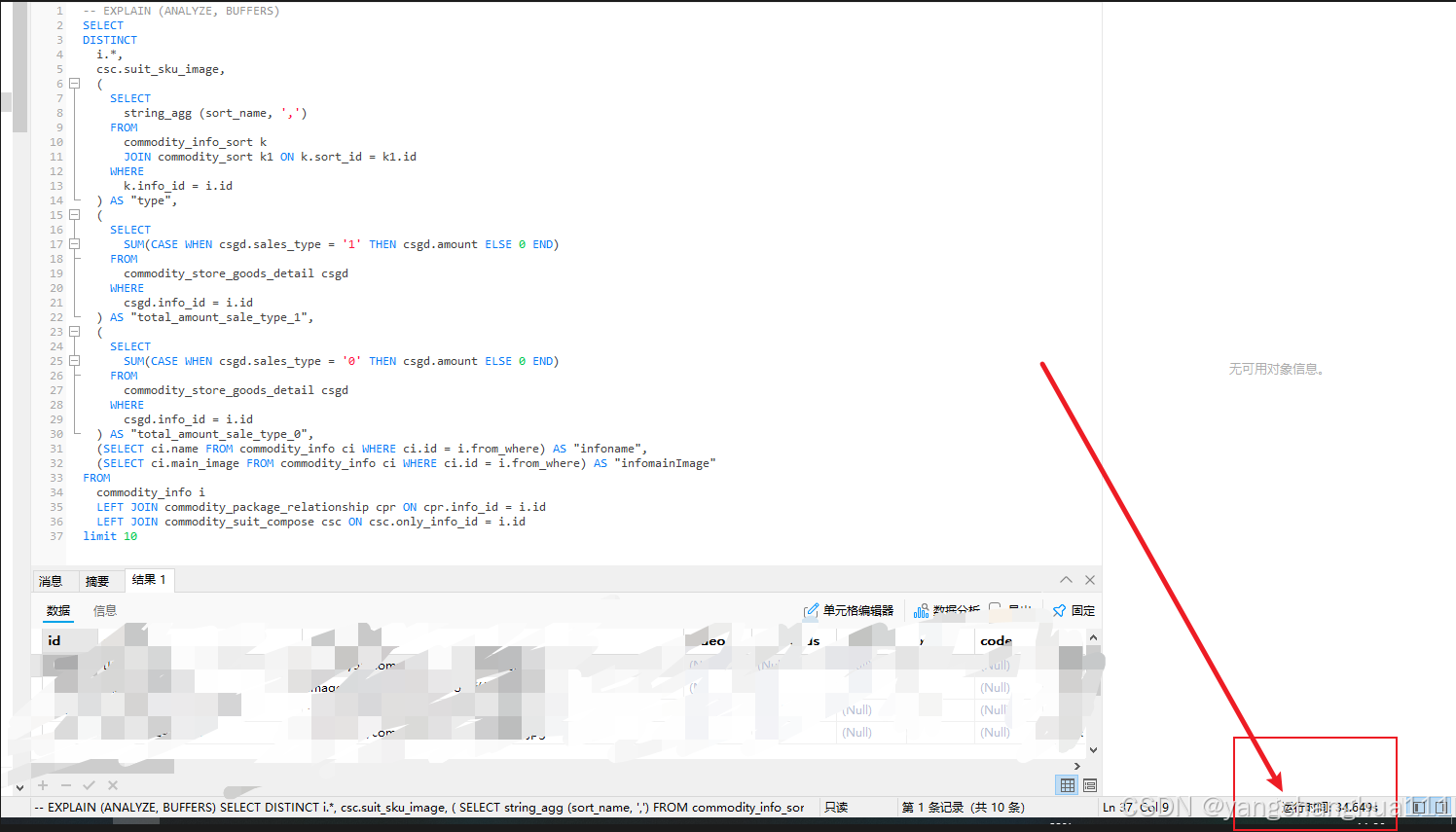 一眼看过去已经觉得这个sql绝对不会快了,有 DISTINCT ,有5个子查询,其实有两个还是针对该sql的主表的,不管三七二十一跑个执行计划看看我们用的是pgsql所以我是这样跑的