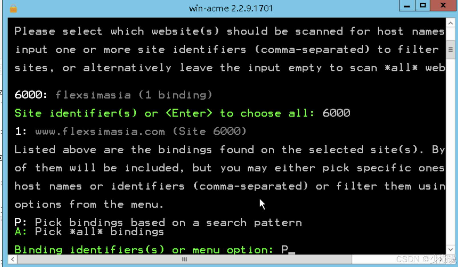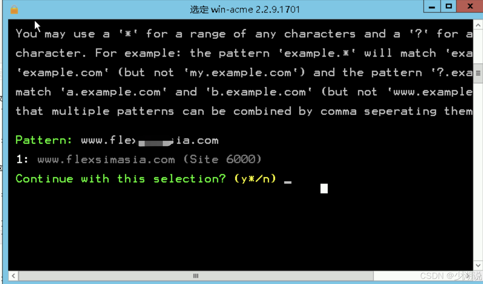 输入申请的域名,例如这里输入 www.flex***.com,需要注意的是,这里的域名必须和 IIS 绑定的域名一致,同时该域名需要解析到当前服务器的 IP 地址而且成正常访问,否则申请会失败。