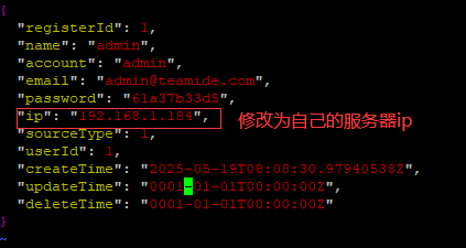 docker compose logs 7,查看 init-user-info.json 文件内容,更改 ip 并记住账号密码。