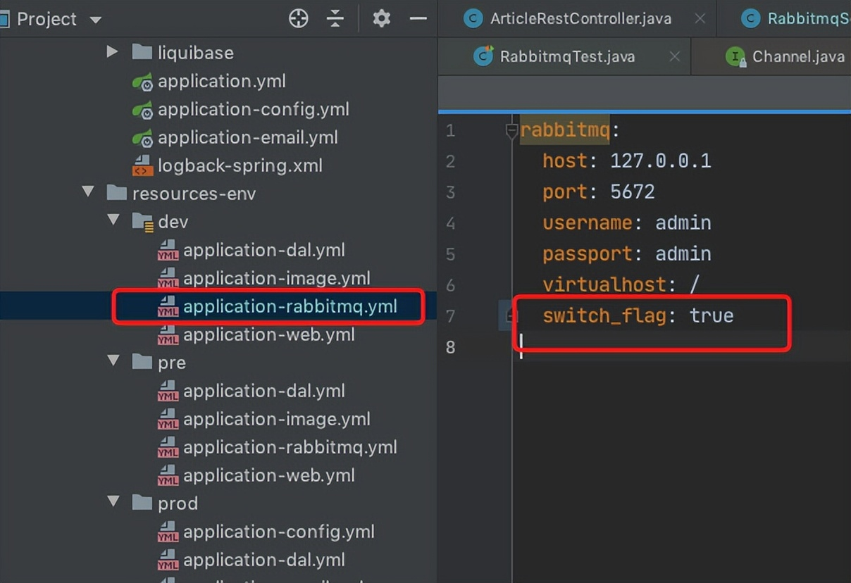 如果需要运行 RabbitMQ,下面的配置需要改成 true,因为代码默认是 false。