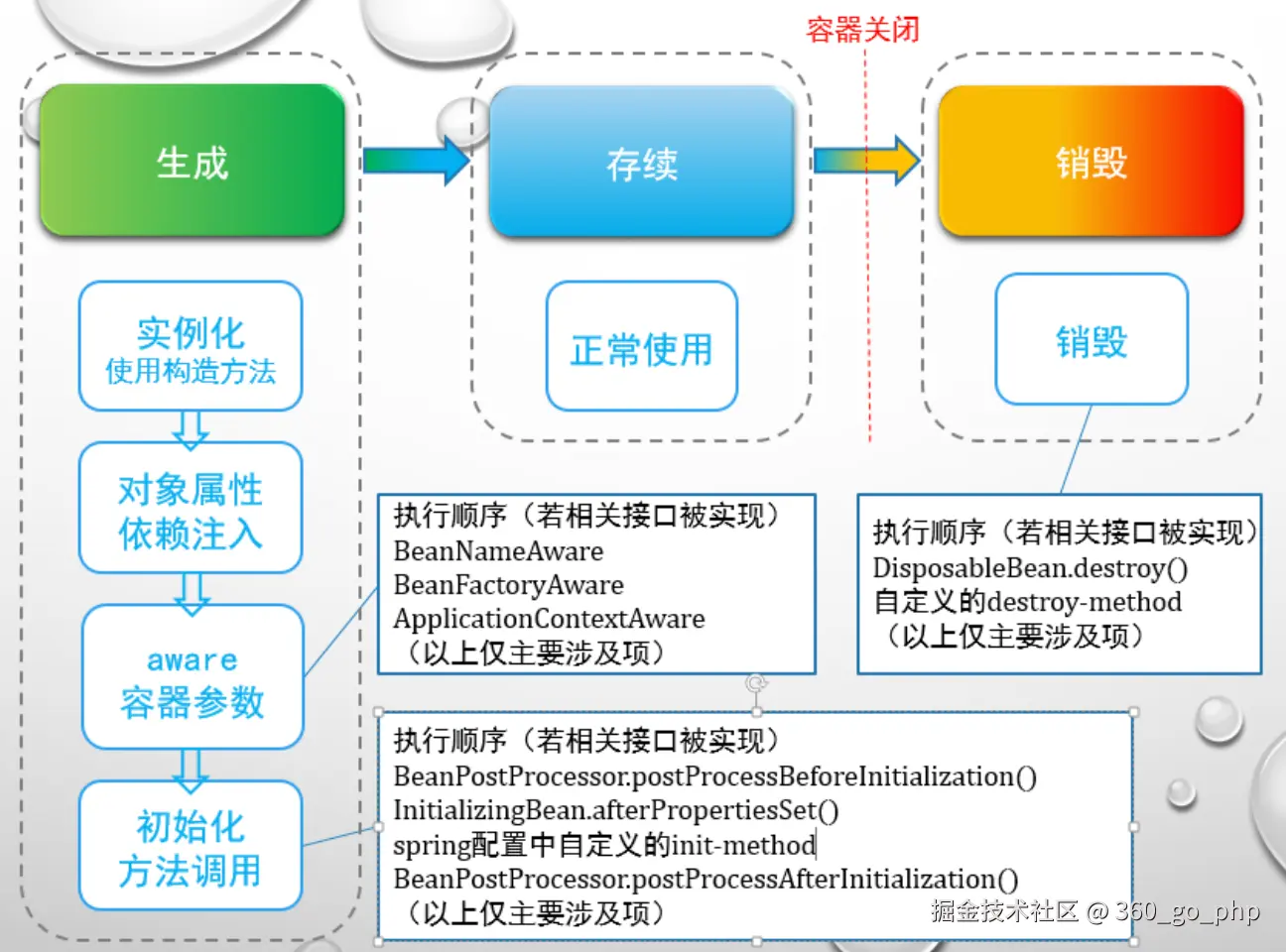 - 销毁(DisposableBean.destroy() 或 @PreDestroy)
