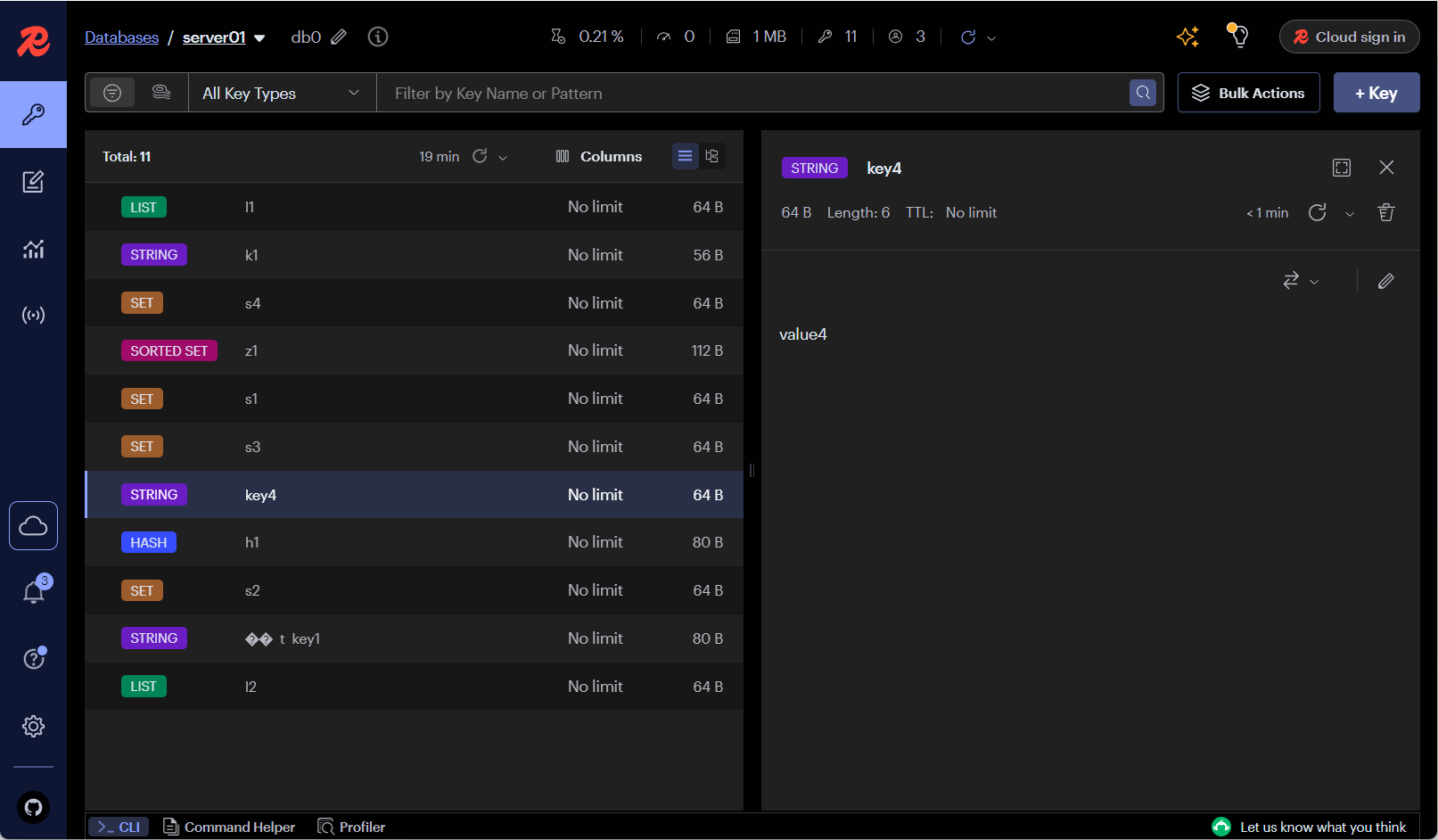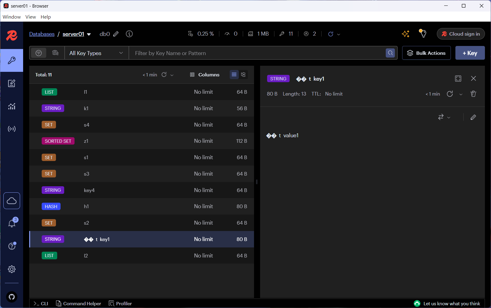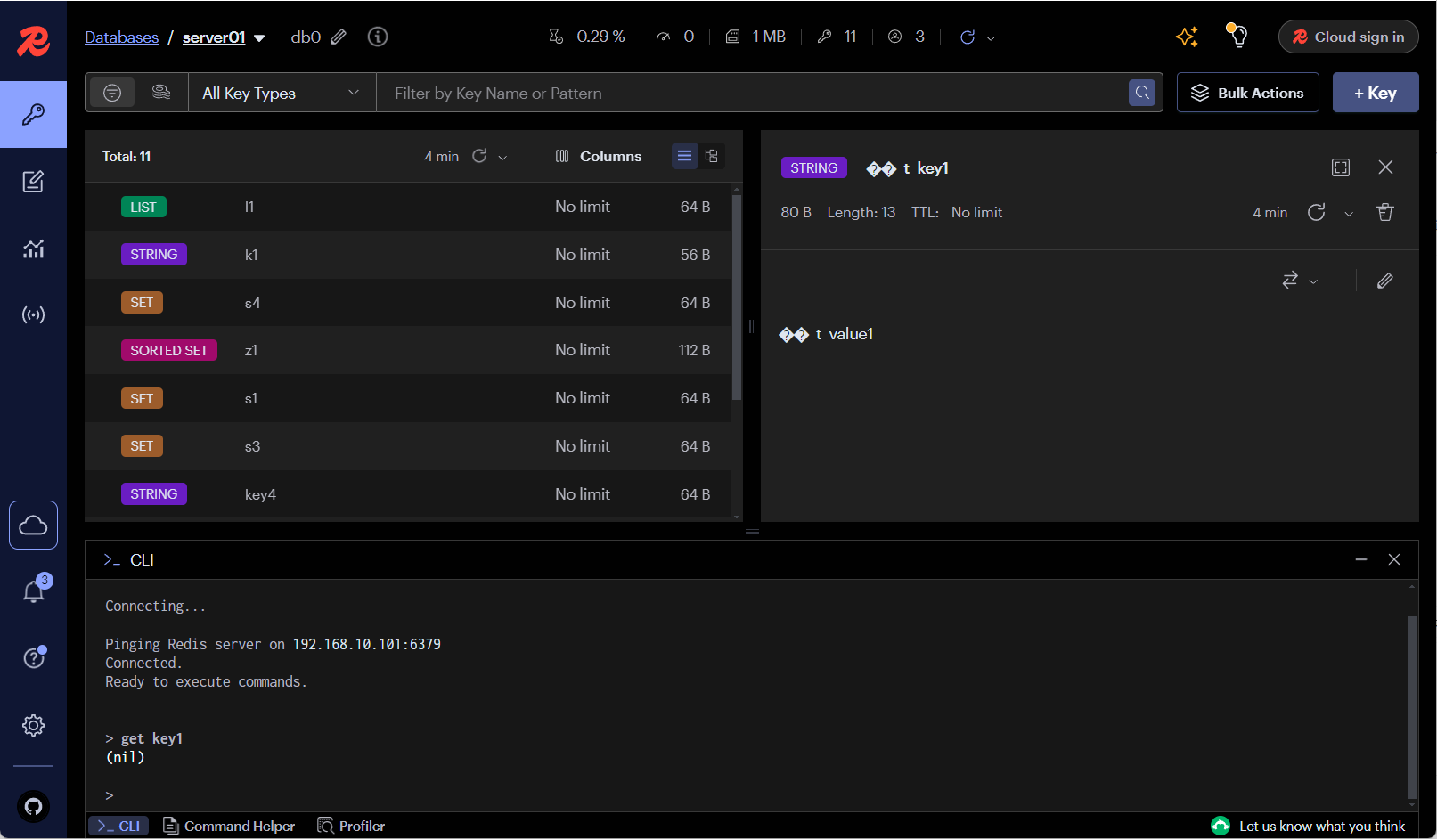 redisTemplate.opsForValue().set("key1","value1");  //创建一个key1:"value1"的string类型的键值对