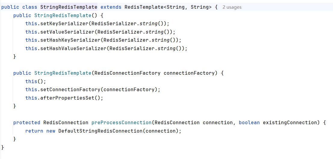 对比RedisTemplate,StringRedisTemplate使用的序列化是Redis自带的序列化方式。