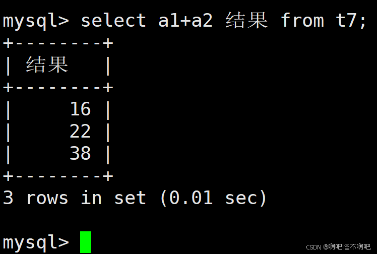 select 想要查询的列 别名 from 表名;我们看下面这张图,这样就给a1+a2取了别名。