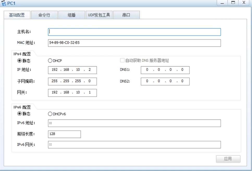 [USG6000V1-GigabitEthernet1/0/0]quit配置 PC