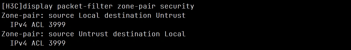 [H3C-zone-pair-security-Untrust-Local]packet-filter 3999