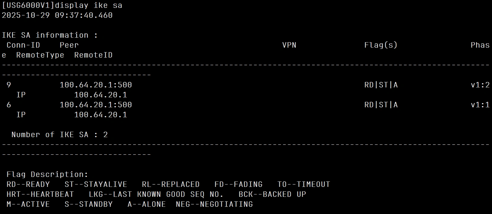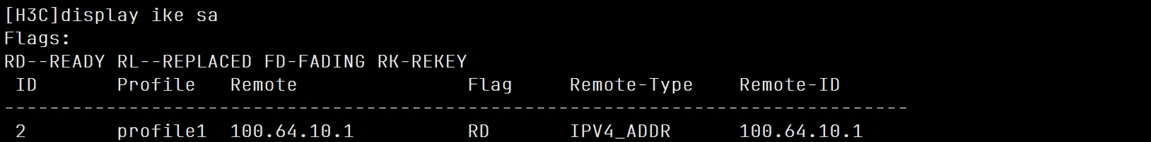 [USG6000V1-ike-peer-h3c]remote-address 100.64.20.1