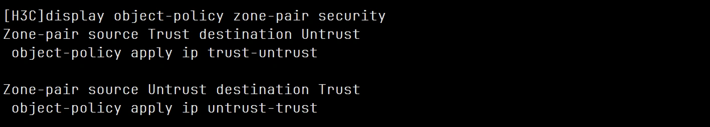 [H3C-zone-pair-security-Trust-Untrust]object-policy apply ip trust-untrust