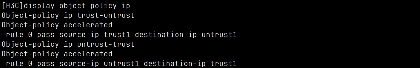[H3C-object-policy-ip-untrust-trust]quit查看对象策略。