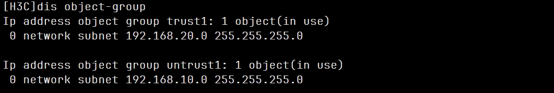 [H3C-obj-grp-ip-untrust1]quit查看对象组。