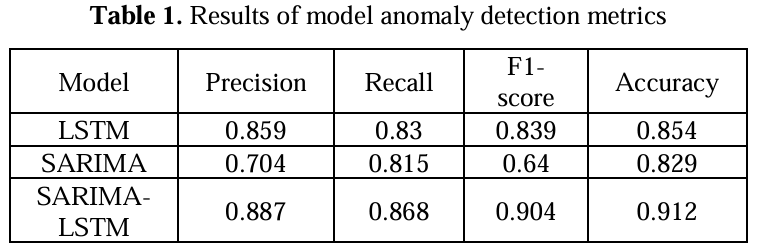 Time series anomaly detection hybrid model based on SARIMA and LSTM