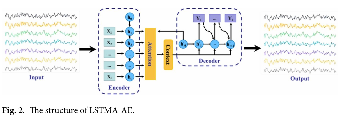 **方法:**论文提出结合注意力机制的 LSTM 自编码器(LSTMA-AE)与机制约束的方法,用于注水泵多维时间序列异常检测,通过 LSTMA-AE 捕捉时序特征并初步判异,机制约束过滤正常波动,在多个数据集上表现优于传统方法。