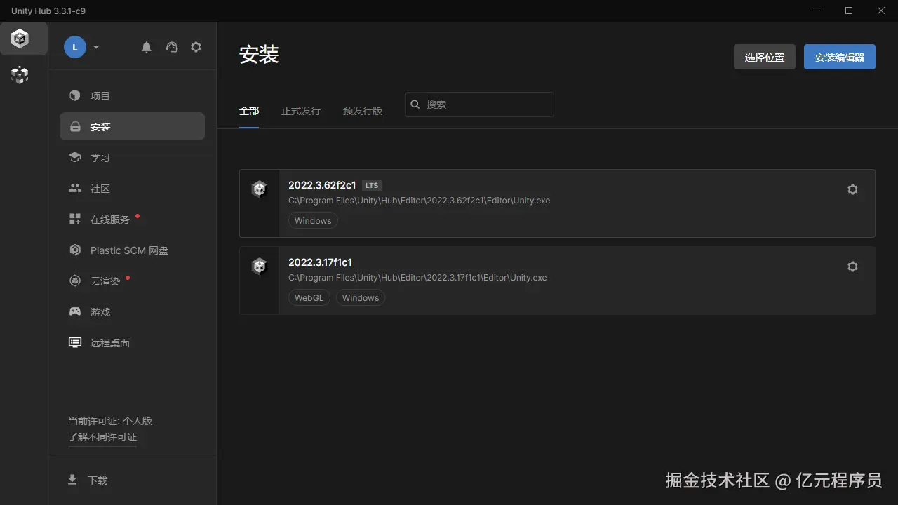 UnityHub 可以使用来管理Unity的编辑器版本、项目以及各种模板。