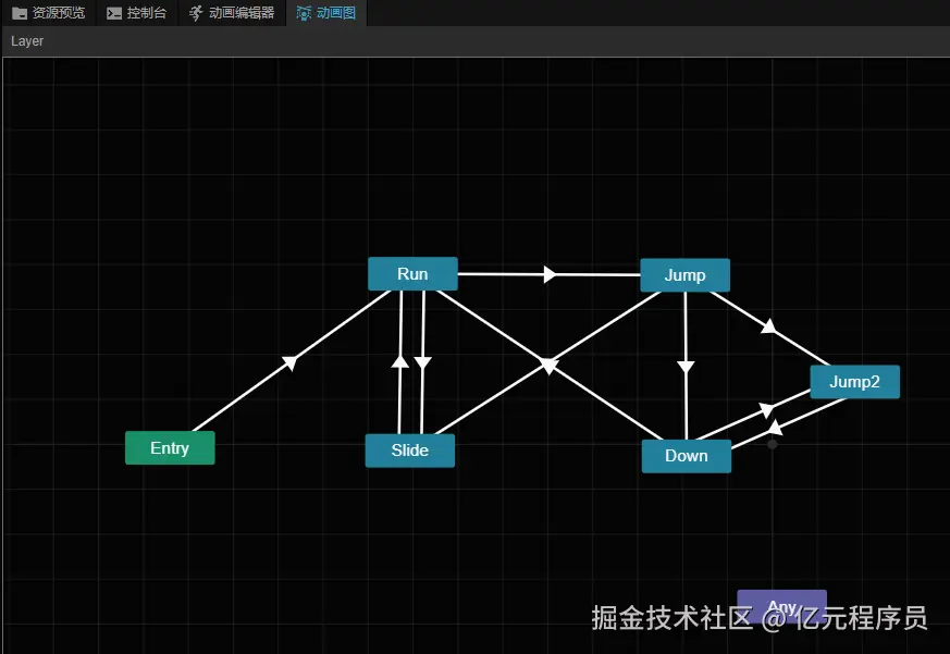 和Unity的Animator类似 ,CocosCreator 也支持动画状态机的编辑,您可以在Marionette动画系统中找到他们。