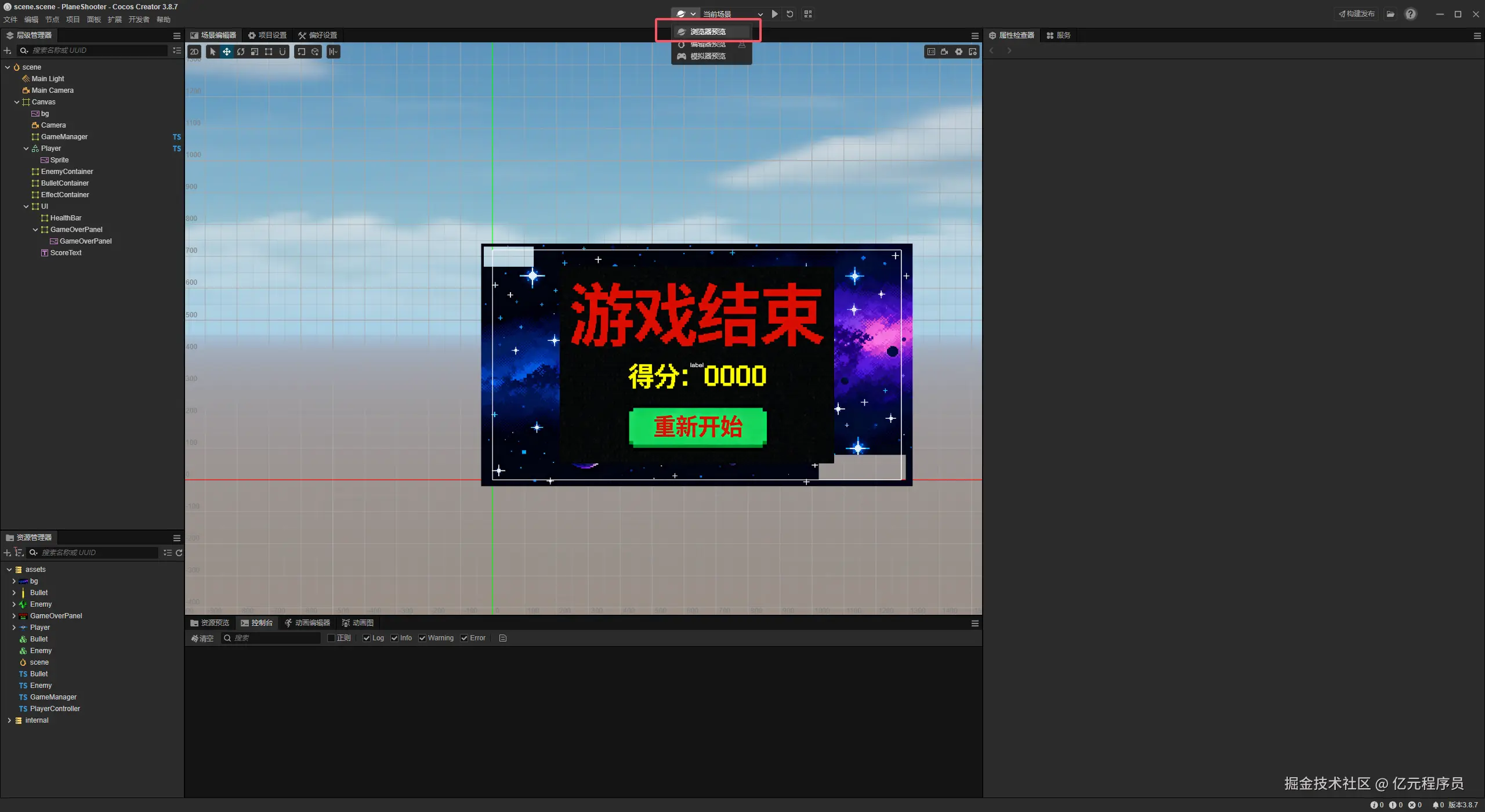略有不同的地方 在于,CocosCreator 由于使用Electronic+Chromium开发,您既可以通过浏览器预览游戏,也可以直接在编辑器内运行游戏