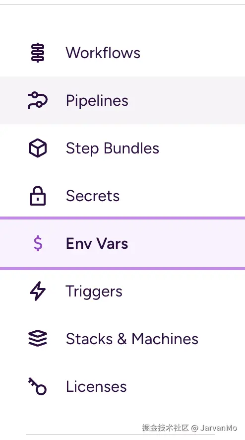 我认为Bitrise的关键概念有三个,分别是steps(步骤)、workflows(工作流程)和pipelines(管道)。除此之外,我还简单说一下环境变量。