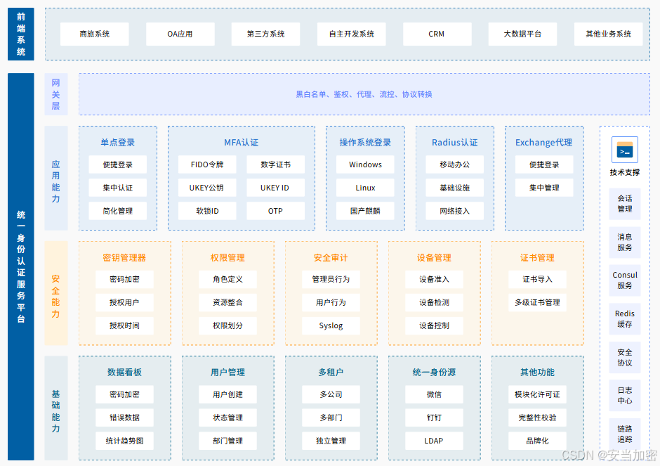 - 2FA集成:统一登录支持短信、OTP、USB Key等双因素认证。