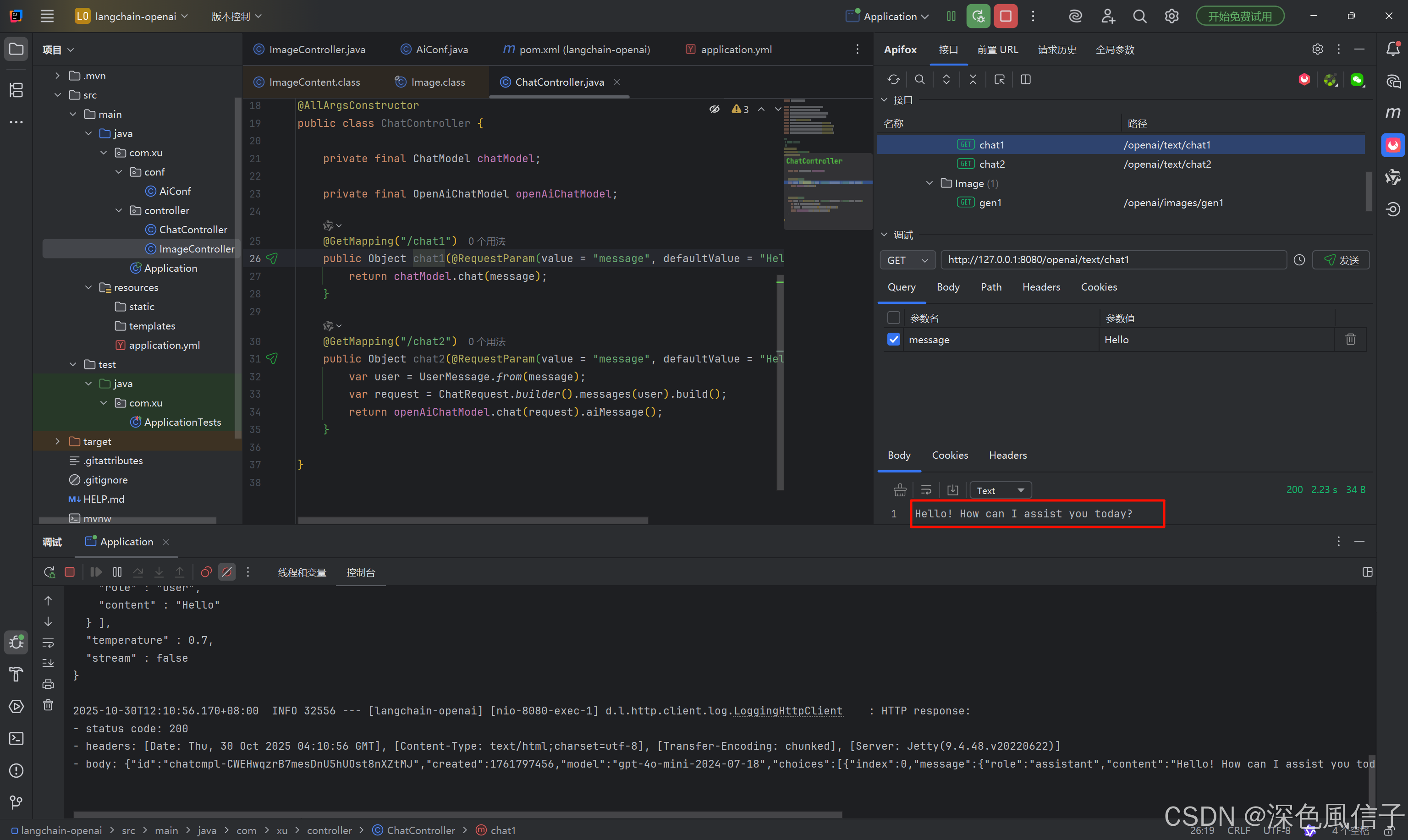 2025-10-30T15:55:22.203+08:00  INFO 29536 --- [langchain-openai] [  restartedMain] o.a.c.c.C.[Tomcat].[localhost].[/]       : Initializing Spring embedded WebApplicationContext