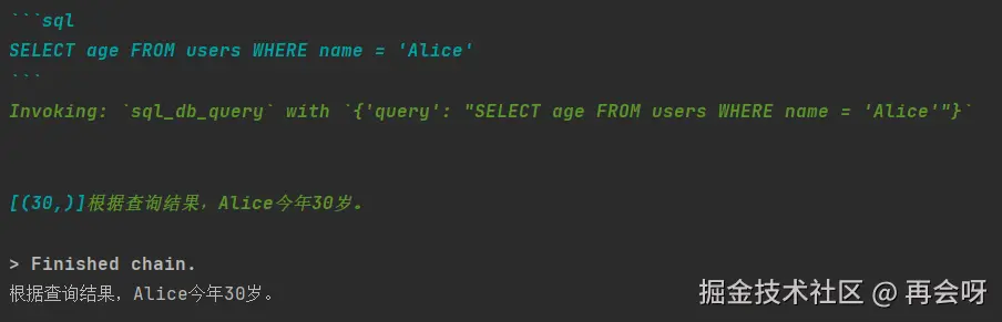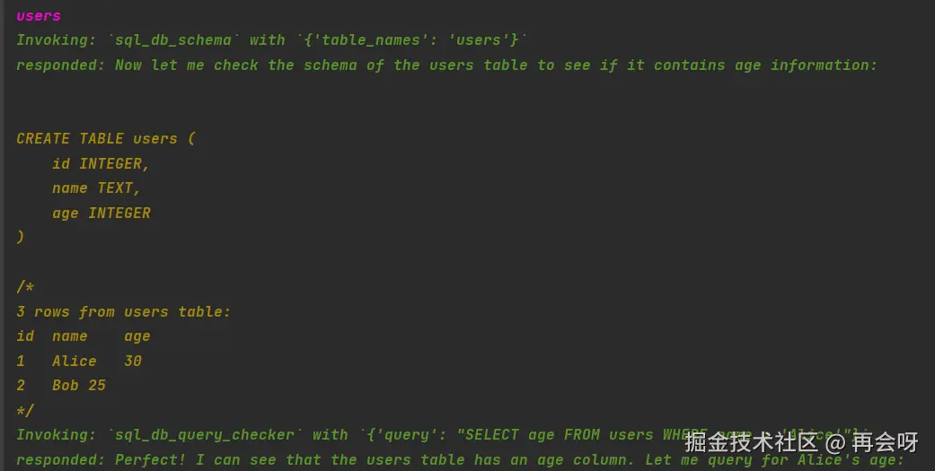 - 它会自动"反思":先查表结构,再编写sql,执行sql,再根据结果回答