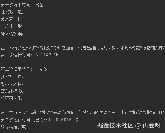 # 第二次调用llm(会命中缓存)