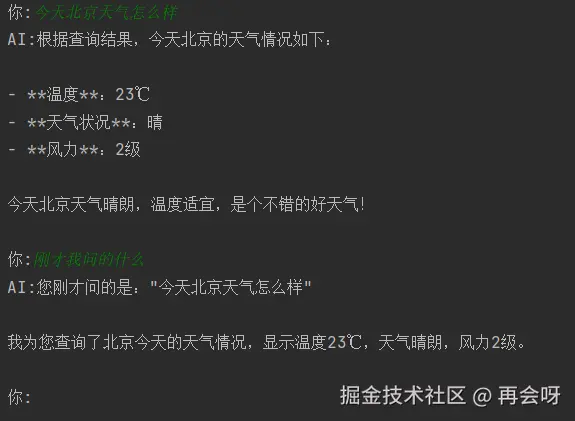 print(f"AI:{response['output']}")测试结果: