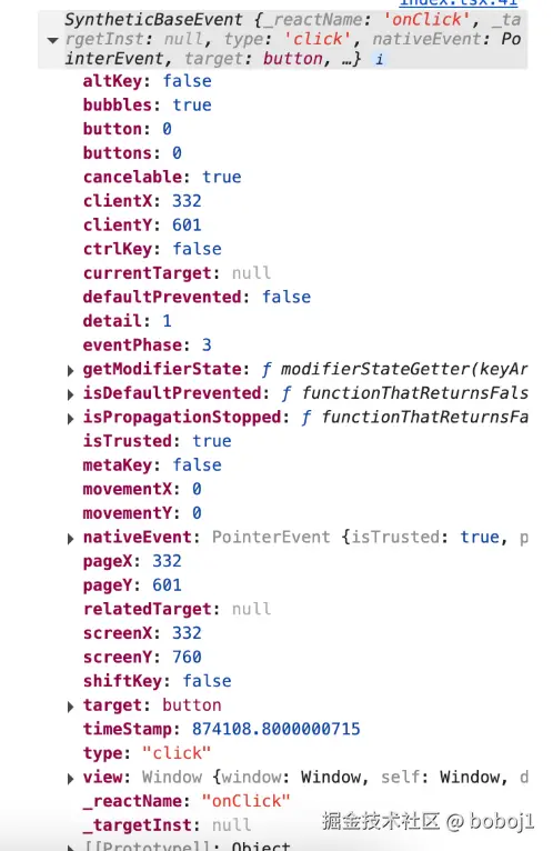 如何想要访问原生的事件对象,则需要通过e.nativeEvent进行访问。