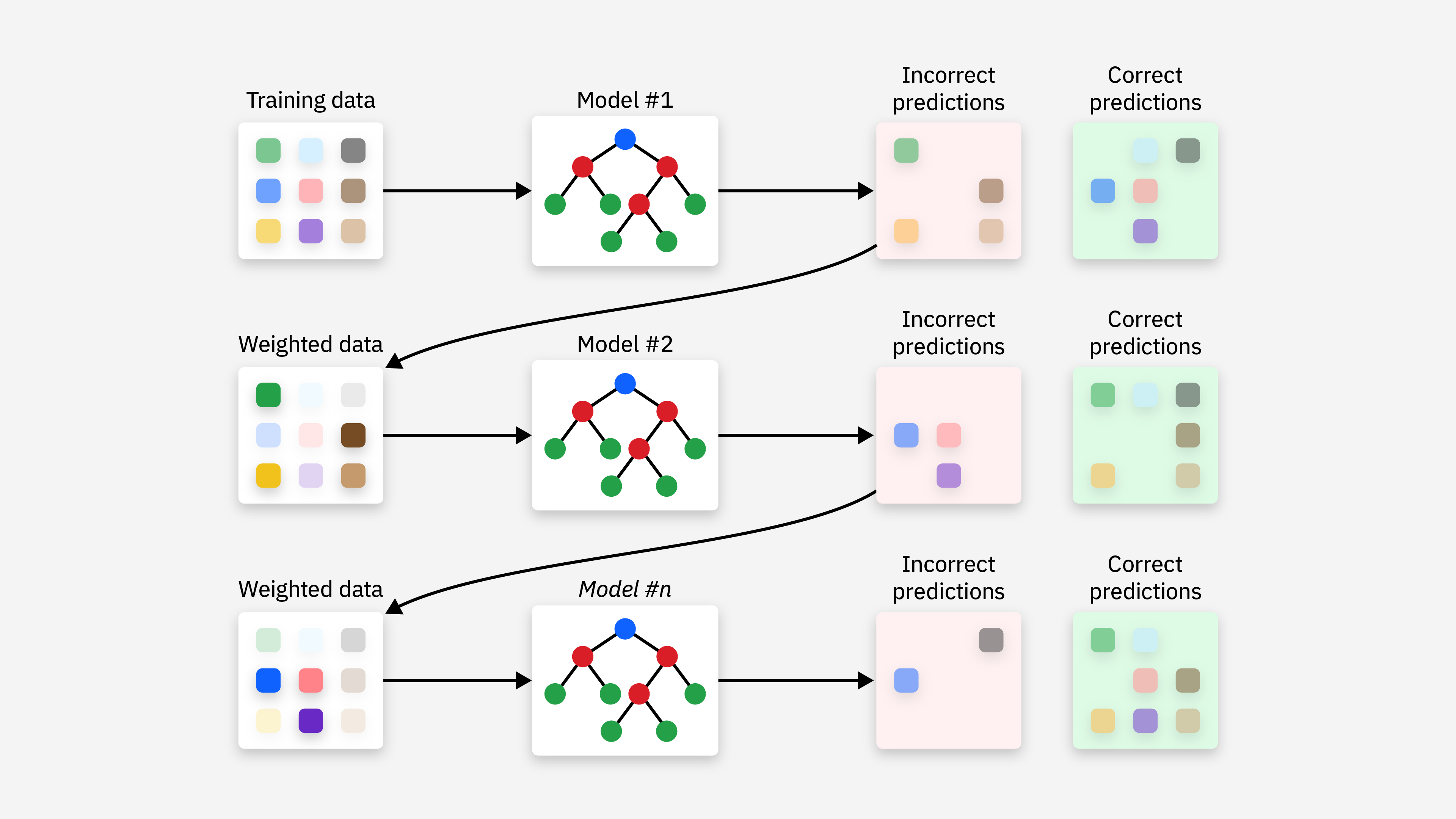 - AdaBoost (Adaptive Boosting):为每个训练样本分配一个权重,并在每次迭代中调整这些权重。