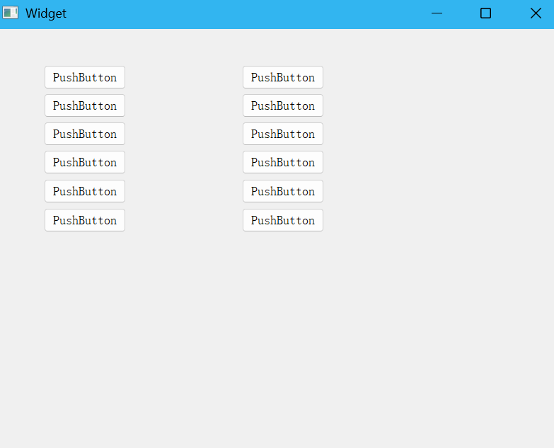1. 在界面上创建两个 QVBoxLayout,每个 QVBoxLayout 各放六个按钮。